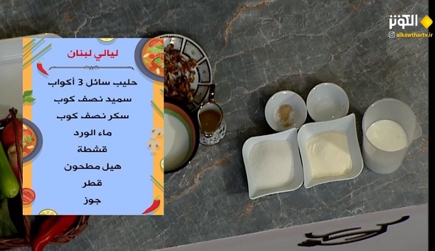 قدمت السيدة انتظار ملكشاهي خلال فقرة الطبخ خلال حلقة أمس السبت في برنامج خلية حب طريقة تحضير "ليالي لبنان" واليكم المكونات والمقادير: