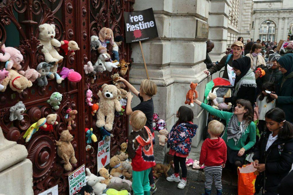 وطالب المتظاهرون الحكومة البريطانية بالدعوة إلى وقف إطلاق النار وايصال المساعدات الى القطاع المحاصر. وبدا المشهد كطوفان بشري لم يسبق له مثيل ووصل عدد المتظاهرين قرابة النصف مليون.