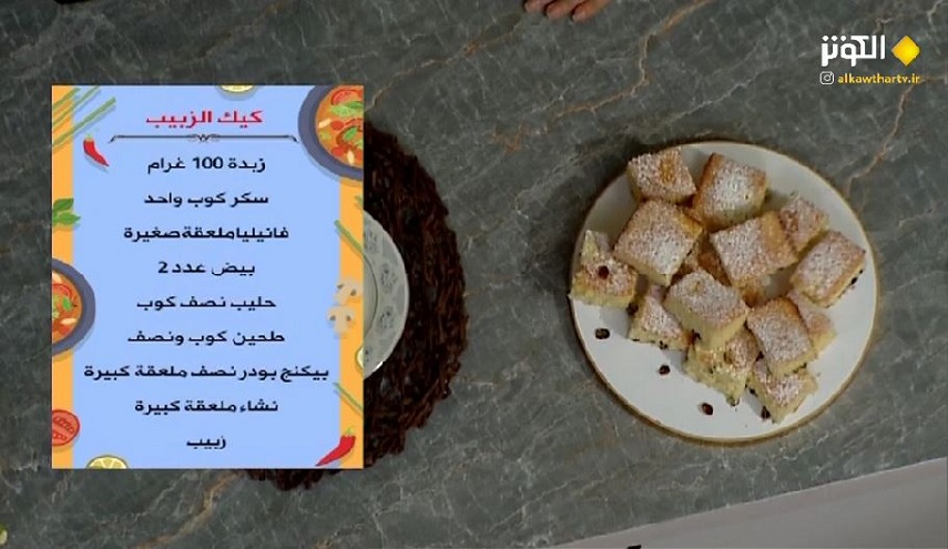 قدمت السيدة انتظار ملكشاهي خلال فقرة الطبخ خلال حلقة أمس الاثنين في برنامج خلية حب طريقة تحضير "كيك الزبيب" واليكم المكونات والمقادير: