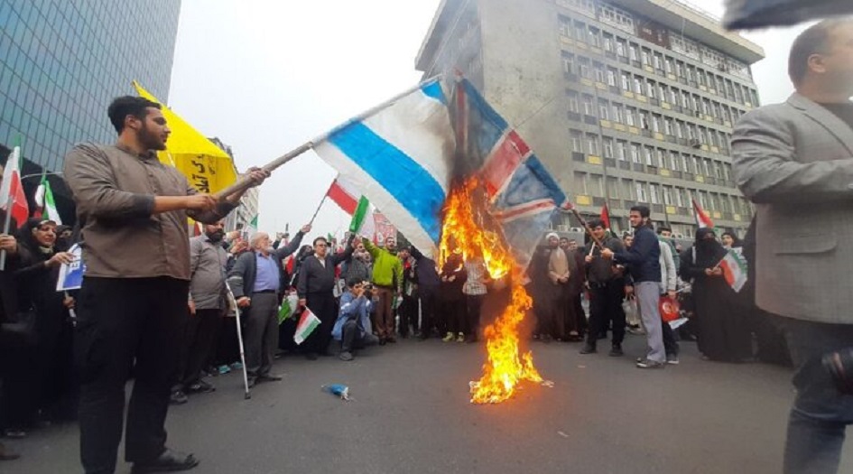 هذا واضرم الطلاب في طهران النار في العلمين الإسرائيلي والأمريكي خلال المسيرة التي نظموها اليوم احتجاجا على القتل الوحشي لاهالي غزة.