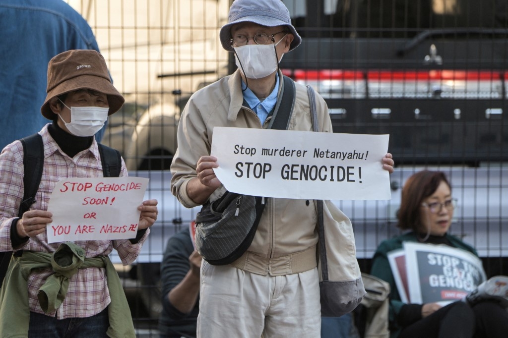 كما نُظِّمت في العاصمة اليابانية طوكيو وقفة أمام السفارة الإسرائيلية، دعماً لفلسطين، داعيةً إلى تحريرها ووقف الإبادة الإسرائيلية.