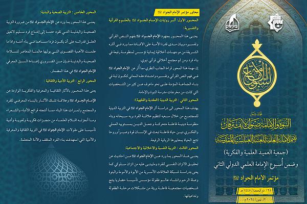 يعنى هذا المحور بالآثار الثقافية والمعرفية والفكرية الواردة عن الإمام الجواد (عليه السلام)، وعلاقة تلك الآثار بالبناء المعرفي للفرد والمجتمع وثمرات هذا البناء، ممّا أنتجته قرائح الأدباء والشعراء وما أنجزته أقلام العلماء من منجزات فكرية ولغوية وأدبية، تأسيساً على مقولات الإمام الجواد(عليه السلام) في التربية الثقافية والمعرفية والأدبية، التي استهدفت بناء الفرد المثقّف والأمّة المتعلّمة.