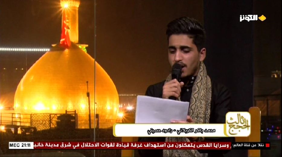 قدم الراود الحسيني الشاب "محمد باقر الكربلائي" قصيدتين معبرتين الاولى بعنوان "عينك على حسين بجيه وايدك بيده خليه"، والاخرى " وي حليب امي رضعته حب الحسين وخدمته".