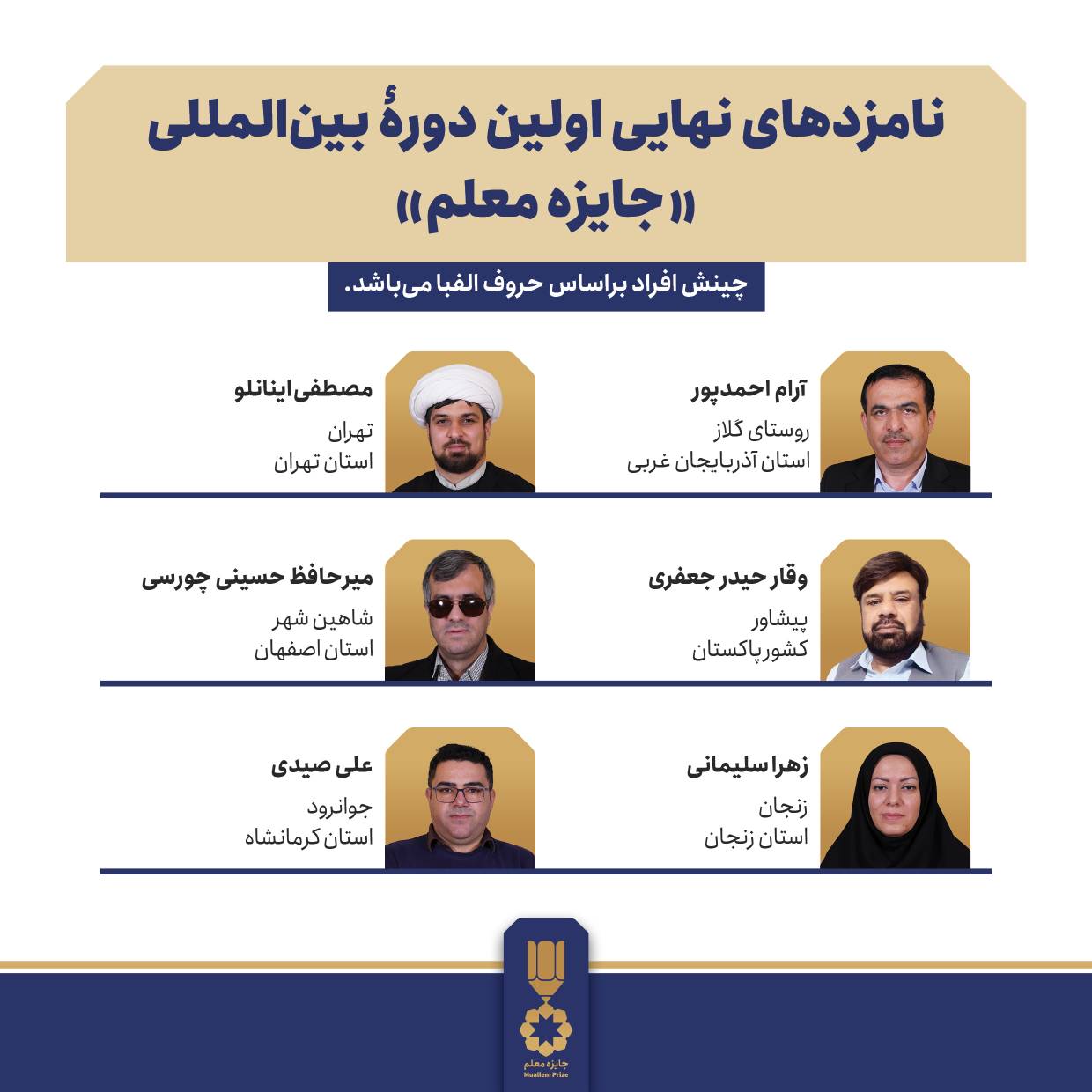 6. الاستاذ علي سعيدي، جوانرود، محافظة كرمانشاه.