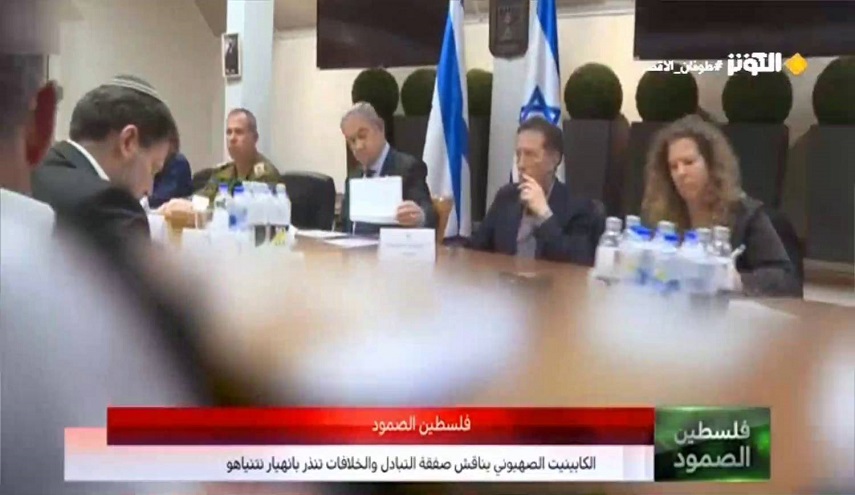بغضون ذلك تنذر الخلافات التي يثيرها المقترح المتعلق بتبادل الاسرى والهدنة في غزة وترتيبات ما بعد الحرب بانهيار مجلس الحرب الصهيوني.