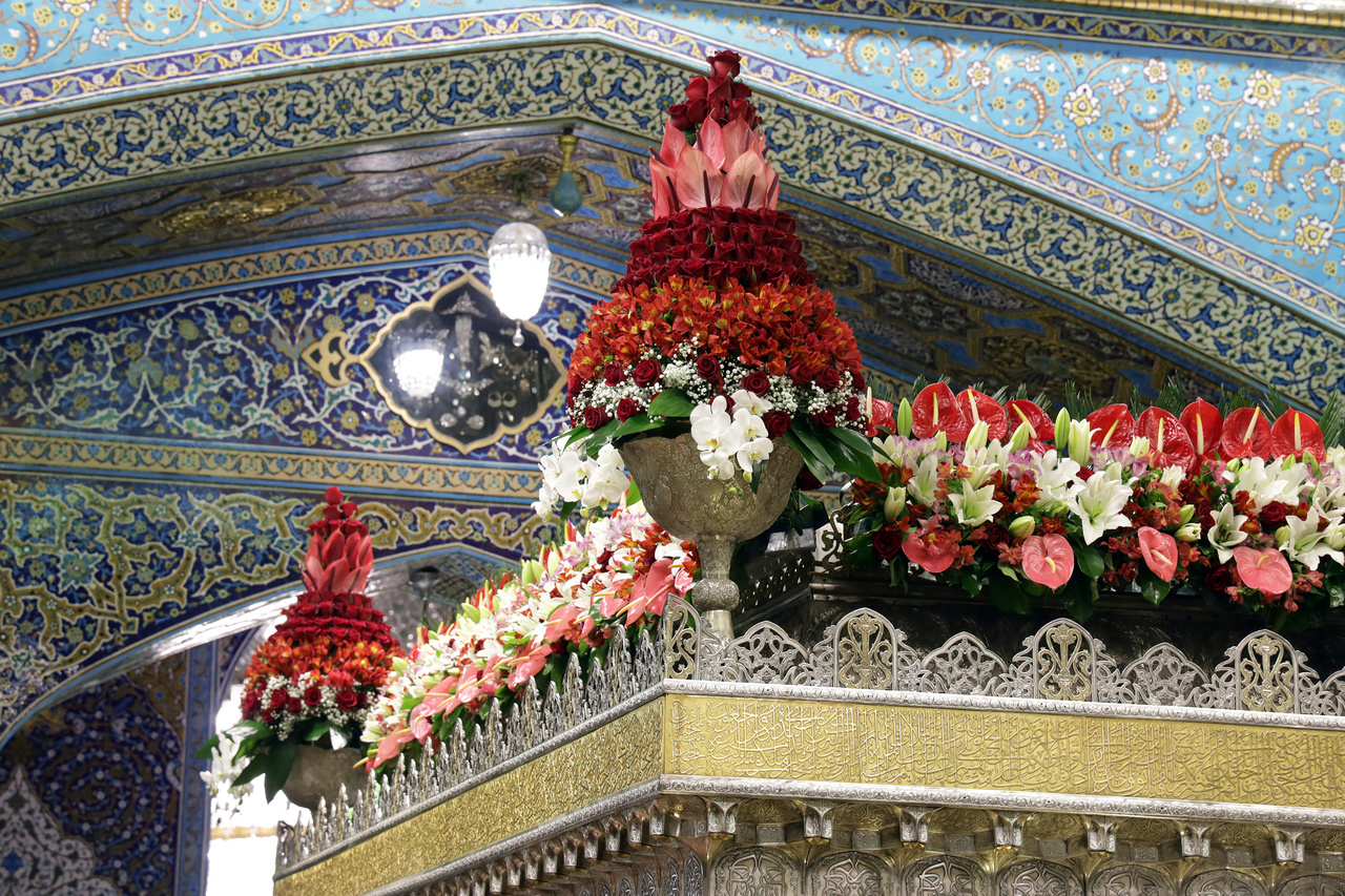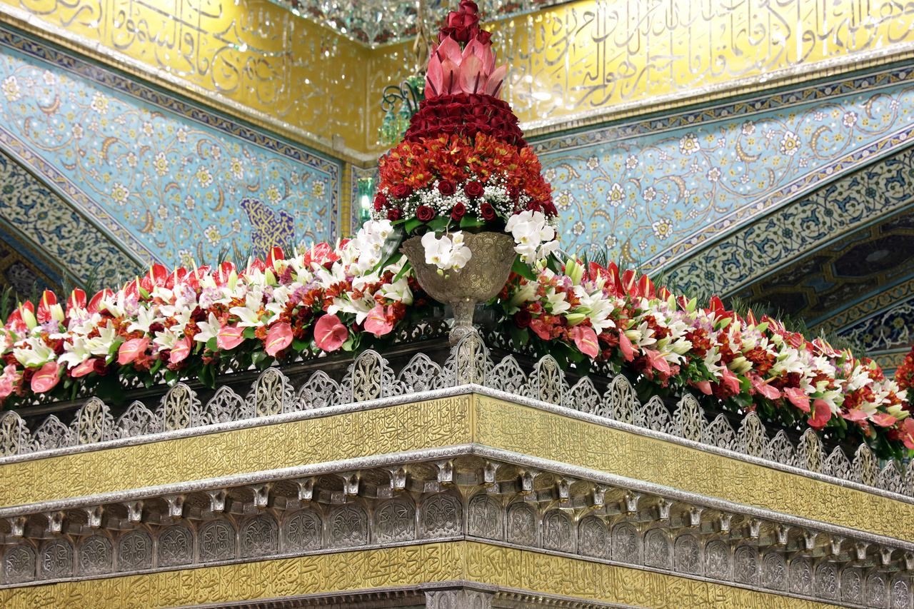 شاهد.. تاج الزهور فوق الضريح الرضوي الشريف
