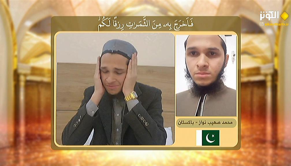 حيث تلا المتسابق من باكستان " محمد صهيب نواز " من سورة إبراهيم المباركة من الآية 28 الى الآية 32.