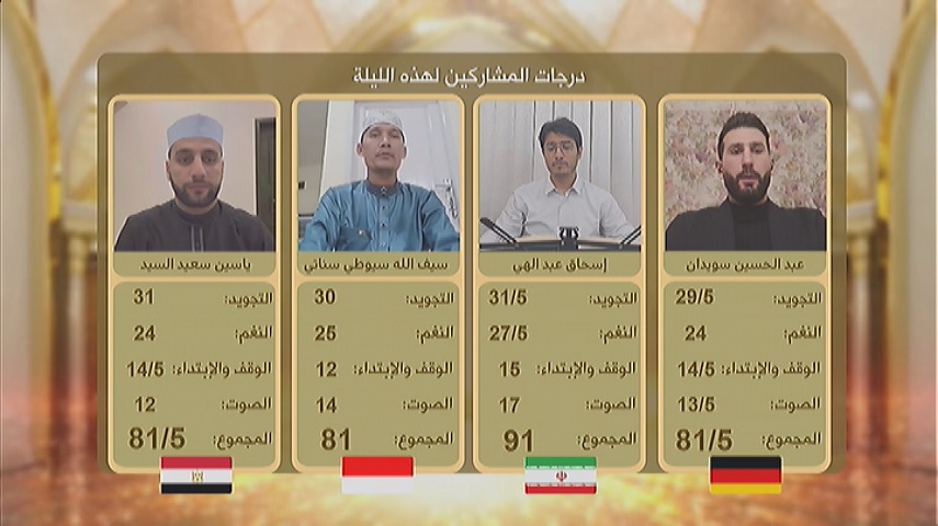 وحصل المتسابق المشارك من إندونيسيا " سيف الله سيوطي سناني " على 81 درجة.