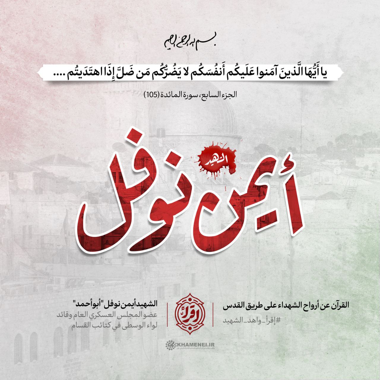 يُشار إلى أنّ الموقع سيقترح يومياً حتى نهاية الشهر المبارك اسماً من الشهداء الذين استشهدوا بعد عملية طوفان الأقصى. وندعوكم لاقتراح أسماء أخرى للشهداء، ممّن استُشهدوا على طريق القدس.