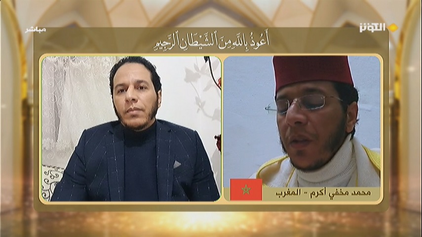 حيث تلا المتسابق من المغرب "محمد مخفي أكرم " من سورة النور المباركة من الآية 54 الى الآية 56