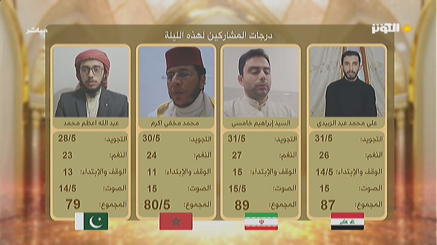 والمتسابق المشارك من إيران " السيد إبراهيم خامسي " قد حصل على 89 درجة.