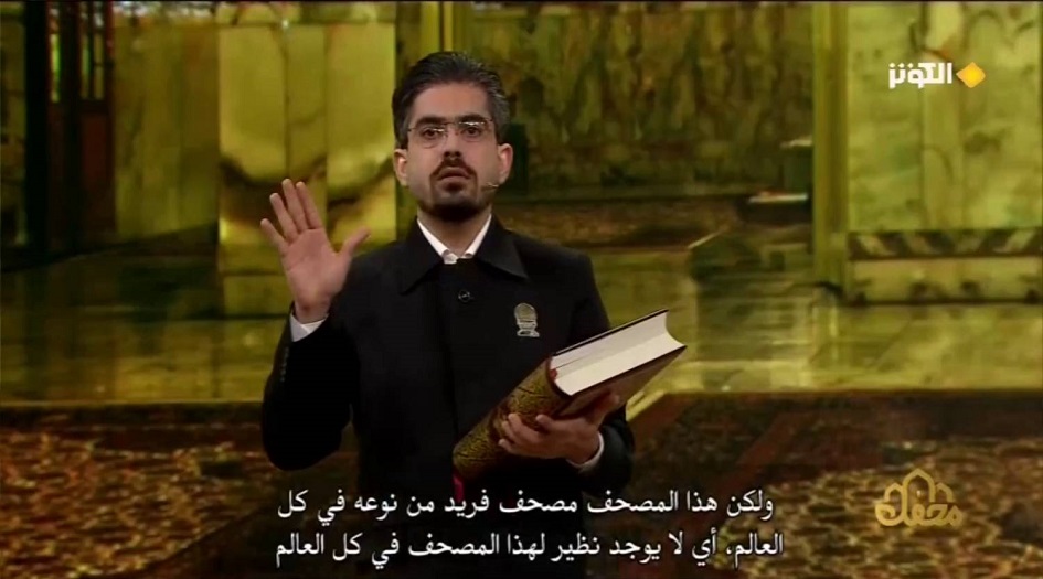 قال السيد أميد حسيني نجاد : إن هذا المصحف مصحف فريد من نوعه ، ولايوجد نظير له في كل العالم ، يعود للقرن الأول أي أقرب فترة زمنية لعهد الرسول الأكرم ، ويحتوي على أكثر من 95 % من الآيات القرآنية ، وقد أجري على نسخة المصحف هذا إختبار الكربون 14 .