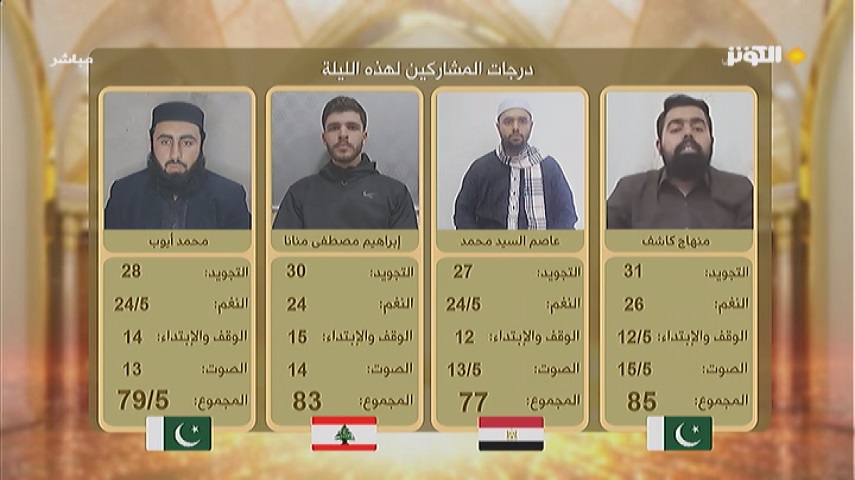 والمتسابق المشارك من لبنان " إبراهيم مصطفى منانا " قد حصل على 83 درجة.