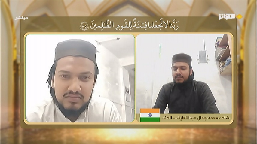 حيث تلا المتسابق من الهند " شاهد محمد جمال عبداللطيف " من سورة يونس المباركة من الآية 84 الى الآية 88.