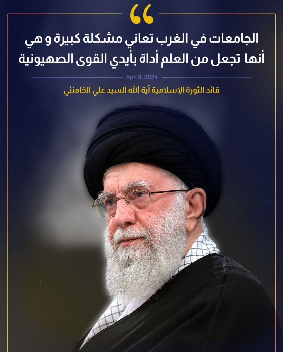 الامام الخامنئي : الجامعات الغربية تجعل من العلم أداة بايدي القوي الصهيونية