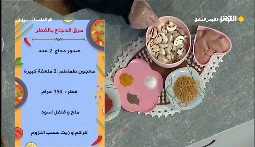 قدمت الشيف " عواطف الحيدري " ضمن فقرة الطبخ في برنامج الأسرة " خلية حب" طريقة تحضير "مرق الدجاج بالفطر"