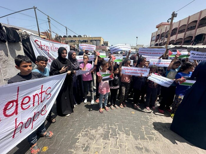 الى ذلك، وجّهت الطالبة النازحة هي الاخرى "حنين نصار"، التحية لطلاب امريكا وقالت انها تتمنى ان يتواصل التضامن حتى توقف الحرب، ليتمكن طلاب غزة من مواصلة تعليمهم الجامعي كما كل طلاب الدنيا.
