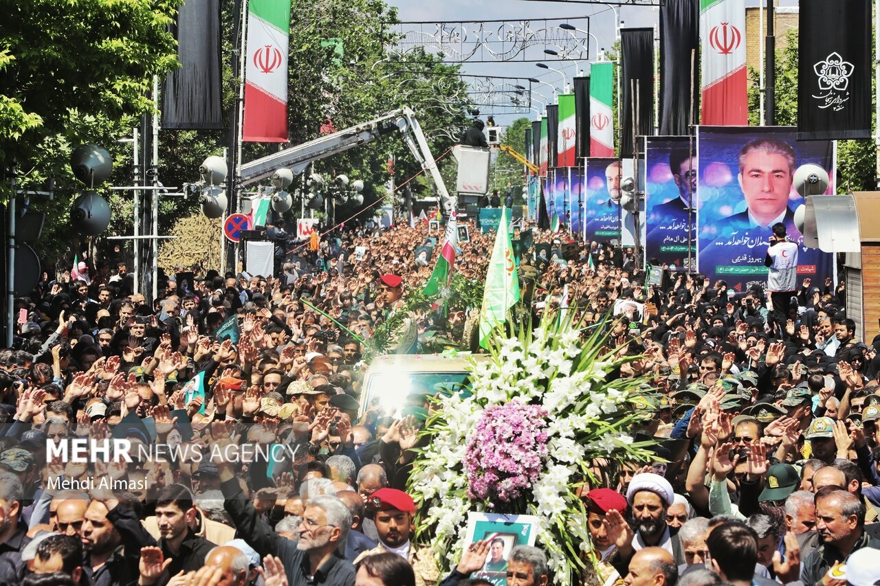وتم تشييع جثمان الرئيس الايراني الشهيد رئيسي وجثامين رفاقه ومن بينهم الشهيد قديمي بمدن تبريز وقم المقدسة والعاصمة طهران في اليومين الماضيين.