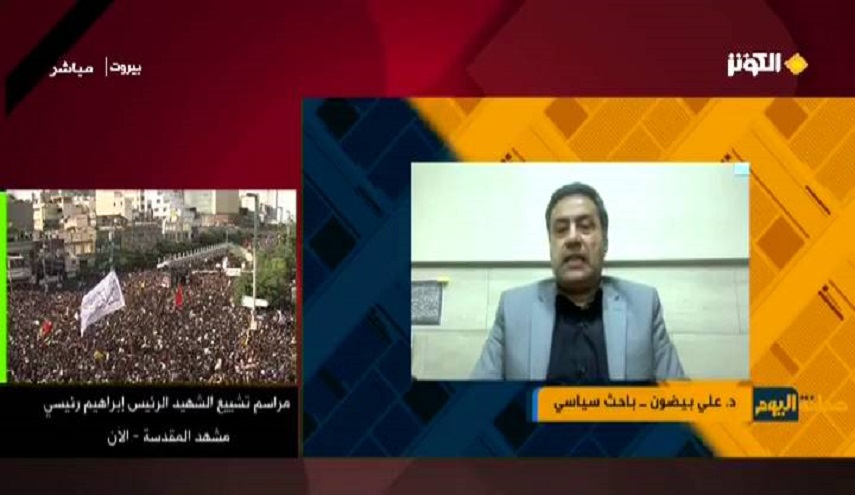 وتابع الباحث السياسي الدكتور علي بيضون: ايران تعودت ان تدفع أثمان غالية جداً في موضوع قياداتها وخصوصاً القيادات المتواجدة في المراكز الاولى والحساسة، ايران اليوم حزينة بفقد رئيسيها و وزير خارجيتها والوفد المرافق لهم، وبالتالي اليوم كل العالم يقف الى جانب ايران وخلفها في هذه المصيبة الأليمة والحزينة ، شعب المقاومة "محور المقاومة" يقف خلف الشعب الايراني في هذا الاطار.
