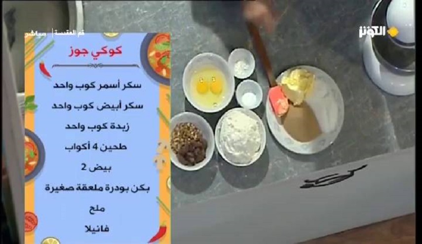 قدمت الشيف ابتسام شمص ضمن فقرة الطبخ في برنامج الأسرة " خلية حب" طريقة تحضير "كوكي الجوز"