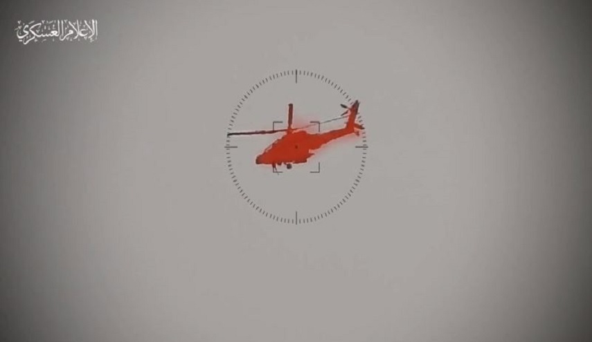 وفي الفيديو تظهر مروحية إسرائيلية تحلق في سماء غزة، بينما يقوم أحد عناصر كتائب القسام بتجهيز سلاحه قبل أن يطلق منه صاروخًا تجاه المروحية، وسط تكبيرات من قبل المقاومين الفلسطينيين، فيما أكمل مقاوم آخر إطلاق النار تجاه المروحية بسلاح رشاش.