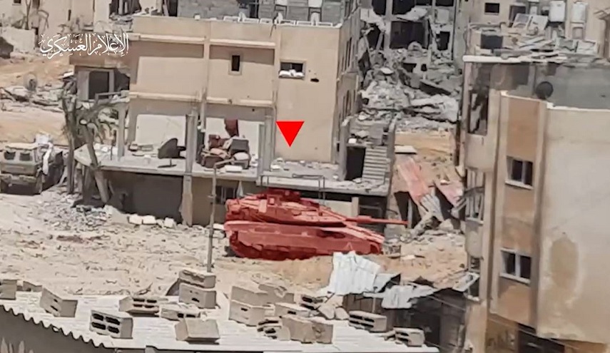 ويظهر الفيديو قيام احد مقاومي القسام بإستهداف دبابة "اسرائيلية" من مسافة (الصفر) واصابتها بشكل مباشر.