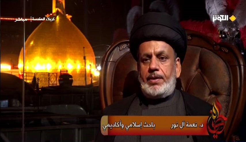 قال الباحث الاسلامي والاكاديمي الدكتور نعمة آل نور: لاريب ان الامام الحسين (ع) امام معصوم مفترض الطاعة وأن يجب على الأمة ان تسير خلفه بلامناقشة، لان الله سبحانه وتعالى يقول: "وما كان لمؤمن ولامؤمنة اذا قضى الله ورسوله امرا ان تكون لهم الخيرة من أمرهم..." ولذلك ان الله اعلم حيث يجعل رسالته، فقد جعل العبء الأكبر بالرسالة وبخلفاء الرسالة من اهل البيت الذين نص عليهم النبي (ص) جعلهم الله سبحانه وتعالى أمناء على رسالته بين خلقه، ولذلك نجد في ألسنة العديد من الزيارات، الامام عالم عارف بالسياسة.