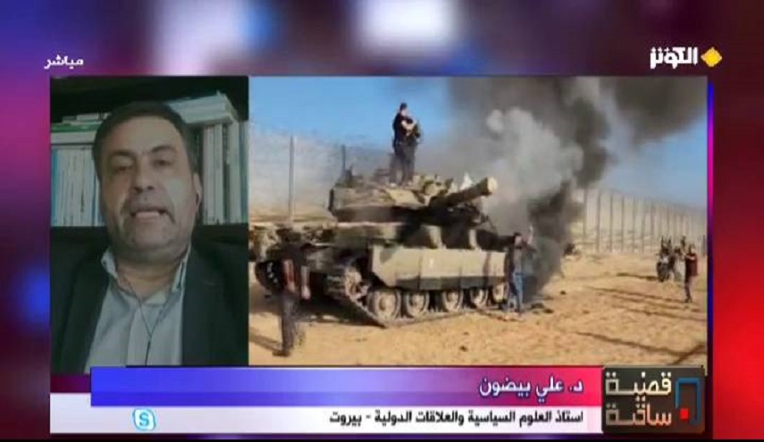 قال المحلل السياسي الدكتور علي بيضون: طبعا العدو الاسرائيلي ومن خلفه الولايات المتحدة الامريكية والاستكبار العالمي منذ زرع هذا الكيان الغاصب في قلب العالم الاسلامي عملوا على نشر الفتن و النزاعات بهدف تقسيم المنطقة الى كيانات متناحرة ضعيفة يسهل بذلك سرقة النفط والثروات الطبيعة الموجودة فيها وبالتالي يسهل سيطرة وتحكم بهذه المنطقة.