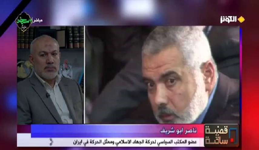 قال عضو المكتب السياسي لحركة الجهاد الاسلامي وممثل الحركة في طهران ناصر ابو شريف: اولا في بداية نعبر عن غضبنا وادانتنا لهذه الجريمة النكراء التي استهدف فيها رئيس المكتب السياسي لحركة حماس القائد الكبير اسماعيل هنية ونعبر ايضا عن ادانتنا لارتكابها في الجمهورية الاسلامية الايرانية وبالتالي انتهاك سيادة بلاد كبير وعظيم في هذه المنطقة" ايران".