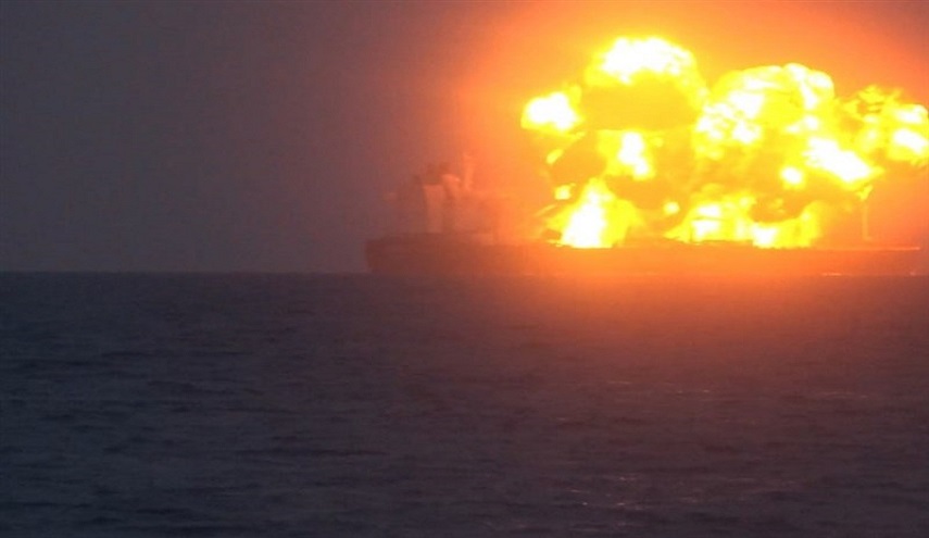 وأظهرت المشاهد لحظة احتراق السفينة جراء استهدافها من قبل القوات البحرية اليمنية وارتفاع السنة اللهب في جسم السفينة.
