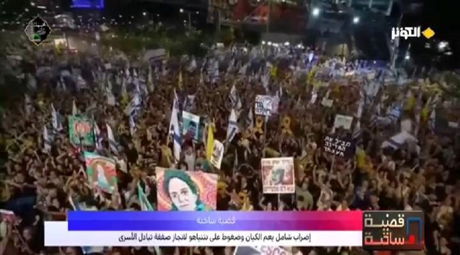 اضرابات شاملة عمت الكيان الاسرائيلي تضامناً مع ذوي الأسرى الاسرائيليين في قطاع غزة ورفضاً لعرقلة رئيس حكومة الاحتلال بنيامين نتنياهو ابرام صفقة تبادل أسرى ووقف اطلاق نار ، وجاءت الاضرابات بدعوة من اتحاد نقابة العمال سعياً لدفع الحكومة الاسرائيلية برئاسة نتنياهو إلى ابرام صفقة تبادل أسرى مع حركة حماس في قطاع غزة وذلك بعد اعلانم الجيش الاسرائيلي العثور على جثث 6 منهم .