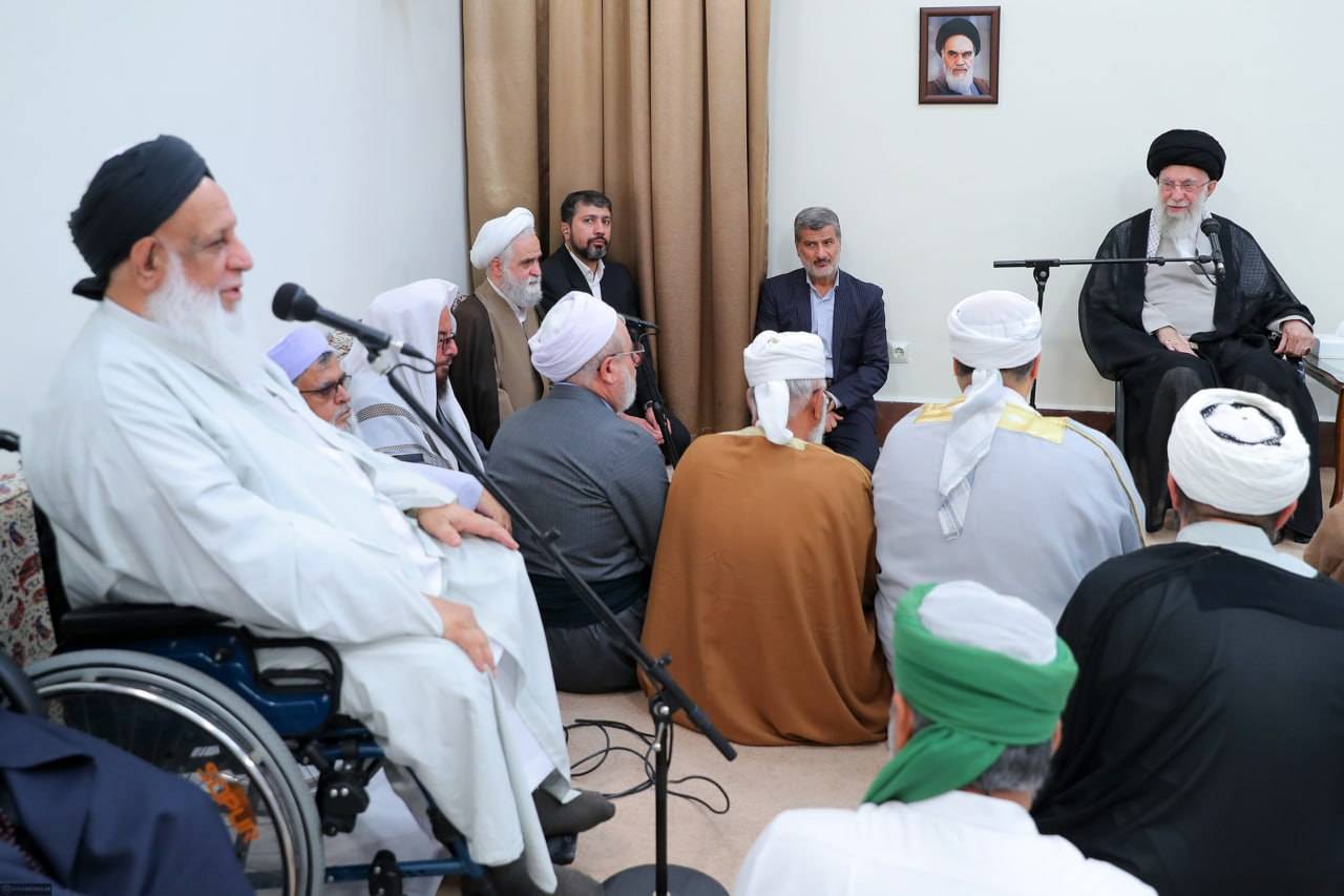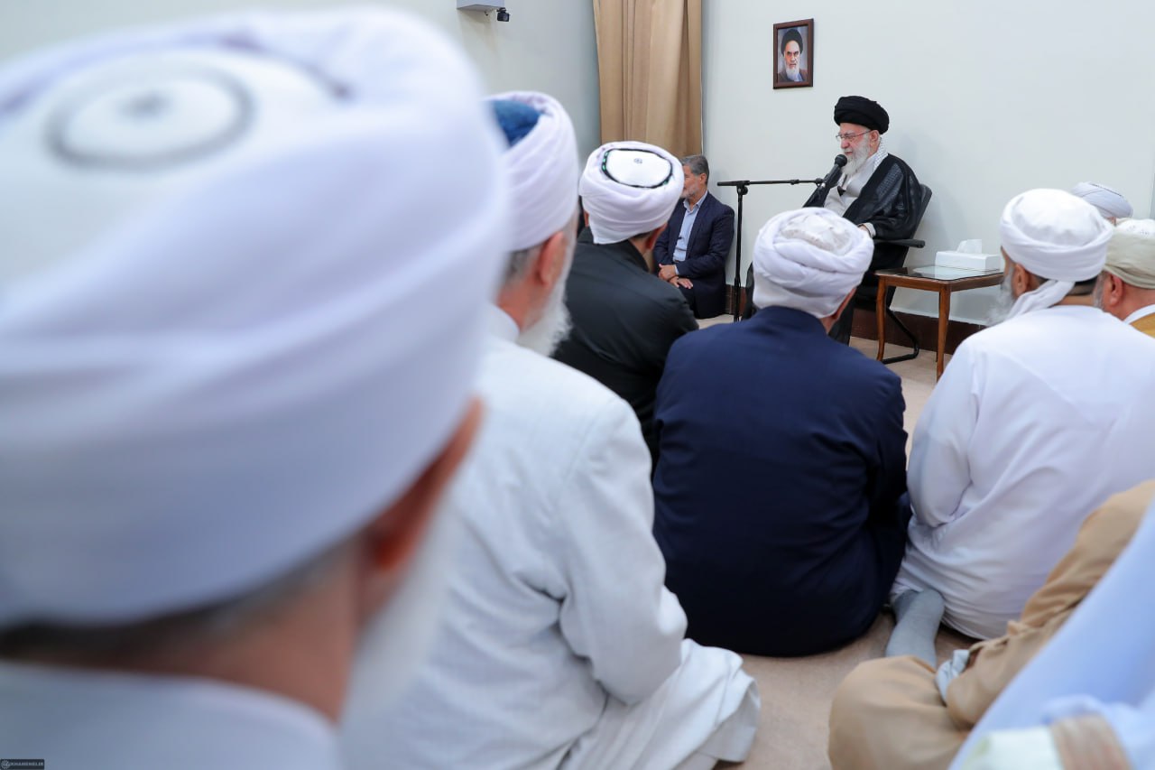 قائد الثورة الإسلامية استقبل، اليوم الإثنين، جمعا من علماء وشيوخ السنة في إيران.