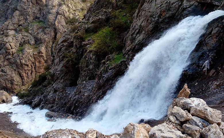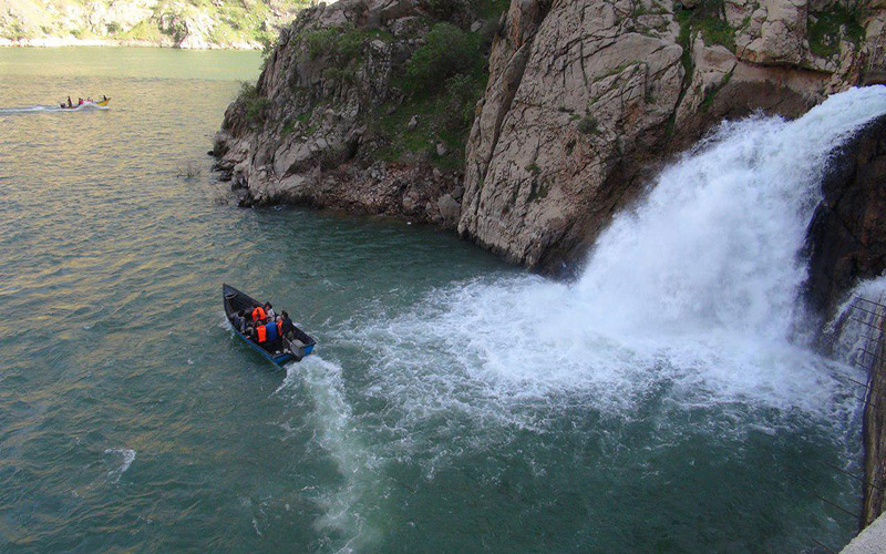 وتقع على مسافة من بحيرة سد داريان، وتشكل مياهها، بعد خروجها من قلب الجبل، شلالاً هادراً وتتدفق إلى البحيرة.