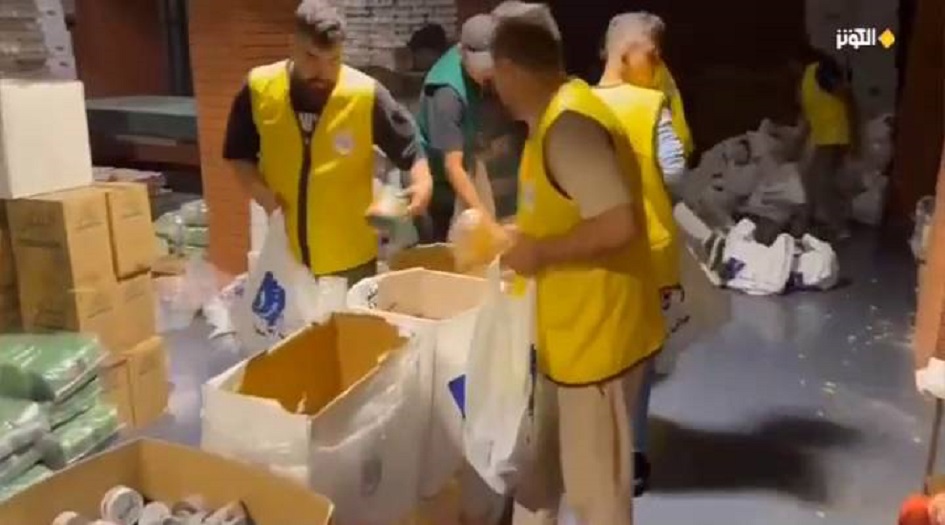 توظيب المساعدات قبل توزيعها لمستحقيها ،عمل خيري وتطوعي يشارك فيه المتطوعين على مدار 24 ساعة ، يومياً يتم تسليم آلاف الحصص للنازحين والمتضررين من الحرب على لبنان .