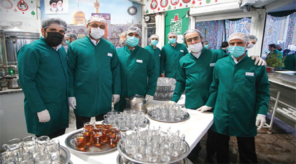 خدام العتبة الرضوية المقدسة والعاملون في الورش الفنية في مرقد الإمام الرضا (ع) لا يتركون أي سماور( جهاز تحضير الشاي ) يقف عن الغليان .