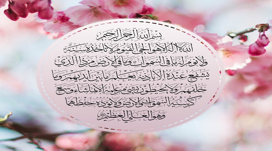 اللَّهُ لَا إِلَٰهَ إِلَّا هُوَ الْحَيُّ الْقَيُّومُ ۚ لَا تَأْخُذُهُ سِنَةٌ وَلَا نَوْمٌ ۚ لَّهُ مَا فِي السَّمَاوَاتِ وَمَا فِي الْأَرْضِ ۗ مَن ذَا الَّذِي يَشْفَعُ عِندَهُ إِلَّا بِإِذْنِهِ ۚ يَعْلَمُ مَا بَيْنَ أَيْدِيهِمْ وَمَا خَلْفَهُمْ ۖ وَلَا يُحِيطُونَ بِشَيْءٍ مِّنْ عِلْمِهِ إِلَّا بِمَا شَاءَ ۚ وَسِعَ كُرْسِيُّهُ السَّمَاوَاتِ وَالْأَرْضَ ۖ وَلَا يَئُودُهُ حِفْظُهُمَا ۚ وَهُوَ الْعَلِيُّ الْعَظِيمُ لَا إِكْرَاهَ فِي الدِّينِ ۖ قَد تَّبَيَّنَ الرُّشْدُ مِنَ الْغَيِّ ۚ فَمَن يَكْفُرْ بِالطَّاغُوتِ وَيُؤْمِن بِاللَّهِ فَقَدِ اسْتَمْسَكَ بِالْعُرْوَةِ الْوُثْقَىٰ لَا انفِصَامَ لَهَا ۗ وَاللَّهُ سَمِيعٌ عَلِيمٌ