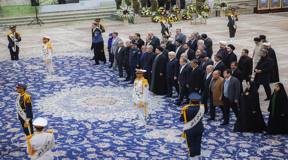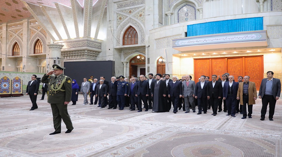 وحضر الرئيس الايراني مسعود بزشكيان ونائبة الاول محمد رضا عارف وباقي اعضاء الحكومة الايرانية حضروا هذه المراسم حيث استقبلهم حفيد الامام الخميني السيد حسن الخميني.
