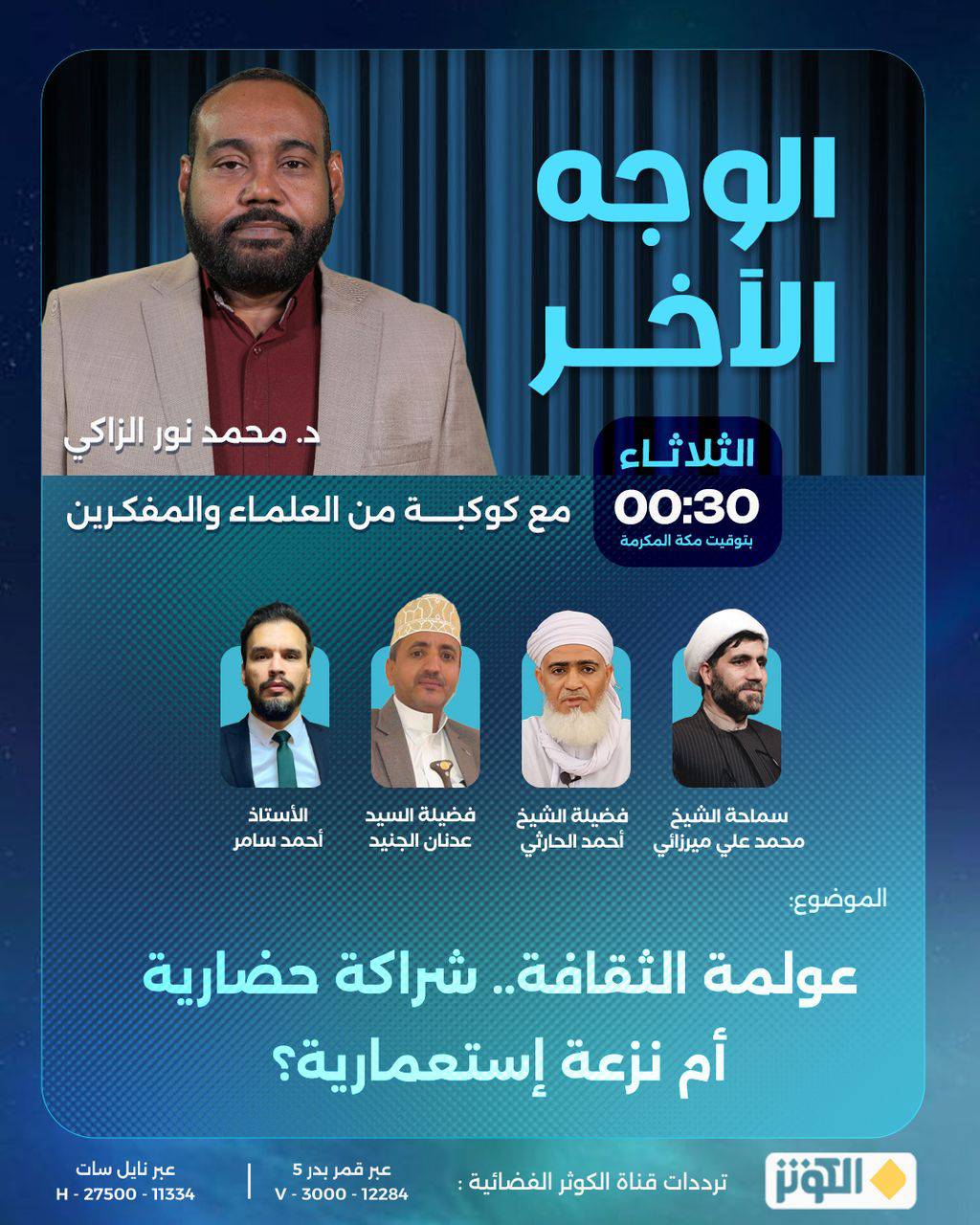 برنامج الوجه الآخر بنسخته الرمضانية، يستضيف نخبة من العلماء والمفكرين من قم والنجف والأزهر، لتحليل التحديات التي تواجه الأمة الإسلامية وأخطار الاستعمار الغربي.
