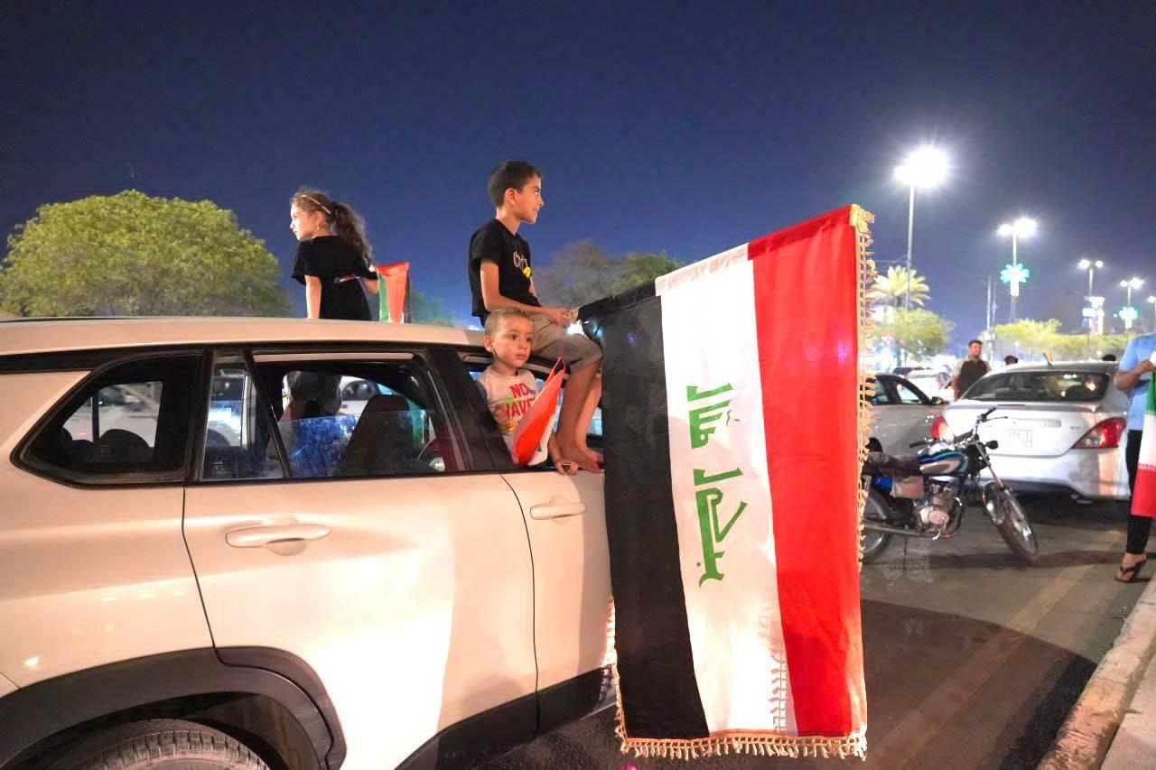 ورُصدت احتفالات شعبية عفوية في شوارع بغداد ومدن جنوبية، حيث رفع المشاركون أعلام محور المقاومة، وهتفوا بشعارات داعمة للرد الإيراني ومنددة بجرائم الاحتلال في غزة وإيران.