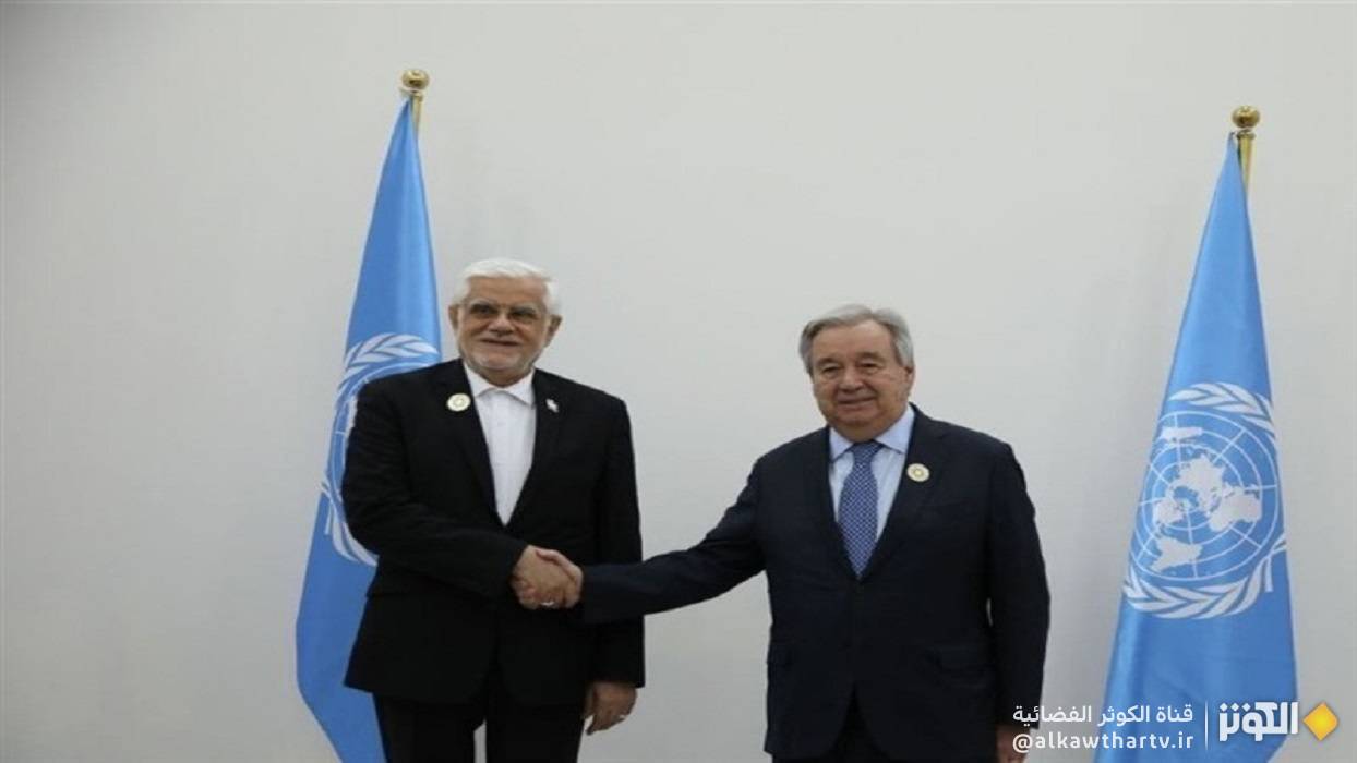 من جانبه، أشاد أنطونيو غوتيريش، الأمين العام للأمم المتحدة، خلال اللقاء بتاريخ وحضارة الإيرانيين وتأثير إيران على الحضارة العالمية، قائلًا: "خلال فترة عملي كمفوض سامٍ لشؤون اللاجئين في الأمم المتحدة، شهدت تعاونًا جيدًا من جمهورية إيران الإسلامية فيما يتعلق باللاجئين".