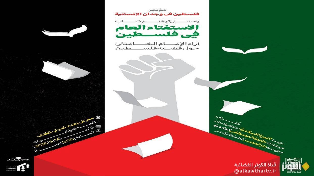 يوم الأحد 14 أيلول/سبتمبر لعام2025، الساعة الخامسة مساءً بتوقيت العراق، سيُقام في معرض بغداد الدولي للكتاب حفل إزاحة الستار عن كتاب قائد الثورة الإسلامية بعنوان: "الاستفتاءالعام في فلسطين".