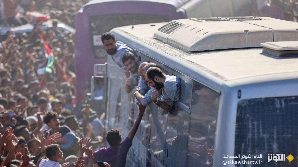 ومع إعلان الهدنة قبل أيامٍ، فتحت الأبوابُ بين خنادق العداء ليتبادل طرفا النزاع قوائمَ الأسرى، وها هو اليوم التحوّل: أفرجت حركة المقاومة الإسلامية حماس عن العشرات من الجنود الصهاينة وعلى الجانب الآخر سلّم الكيان الصهيوني قرابة ألفين من الفلسطينيين إلى ذويهم — بعضهم أمضى أعوامًا في الاعتقال، وبعضهم تم اقتيادُه في رحى المواجهة الأخيرة.
