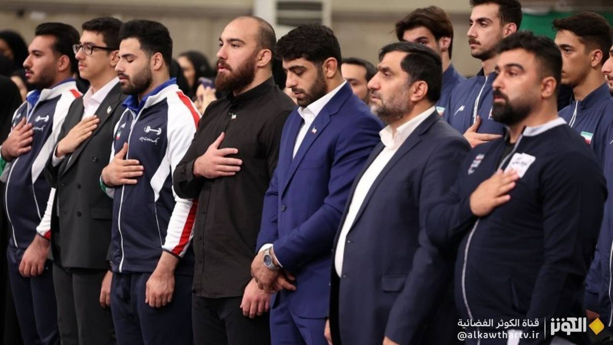 كما وصف الإمام الخامنئي «احترام الرياضيين للعلم، وسجودهم ودعاءهم بعد الفوز» بأنه مظهر من مظاهر الشعب الإيراني، مضيفاً: «الطلاب الإيرانيون المشاركون في الأولمبيادات العلمية هم اليوم نجوم لامعة، لكن بعد عشر سنوات، إذا واصلوا جهدهم، فسيصبحون شموساً ساطعة، وهنا تكمن مسؤولية كبيرة على عاتق المسؤولين».