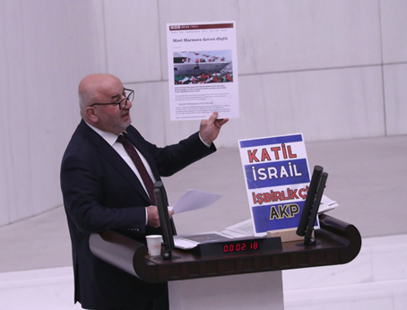 الانتقادات الموجهة لأردوغان لم تقتصر على الشعب التركي والمسلمين الآخرین فحسب، بل امتدت إلى أحد أعضاء البرلمان التركي، حسن بيتمز، الذي اتهم حزب العدالة والتنمية وأردوغان بالنفاق خلال خطاب عاصف في البرلمان. كما كشف عن استمرار العلاقات الاقتصادية بين تركيا وإسرائيل رغم إعلان تركيا فرض حظر على إسرائيل. أثناء هذا الخطاب، كان بيتمز غاضبًا ومضطربًا لدرجة أنه أصيب بنوبة قلبية وتوفي بعد يومين. وصفه النشطاء المؤيدون لفلسطين بأنه شهيد في مواجهة النفاق.