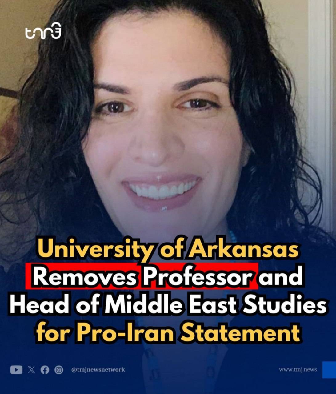 ذكرت صحيفة نيويورك بوست الأمريكية اليوم السبت الفائت أن أستاذة العلوم السياسية في جامعة أركنساس متهمة بالإشادة بقائد الجمهورية الإسلامية الإيرانية وانتقاد الكيان الصهيوني.