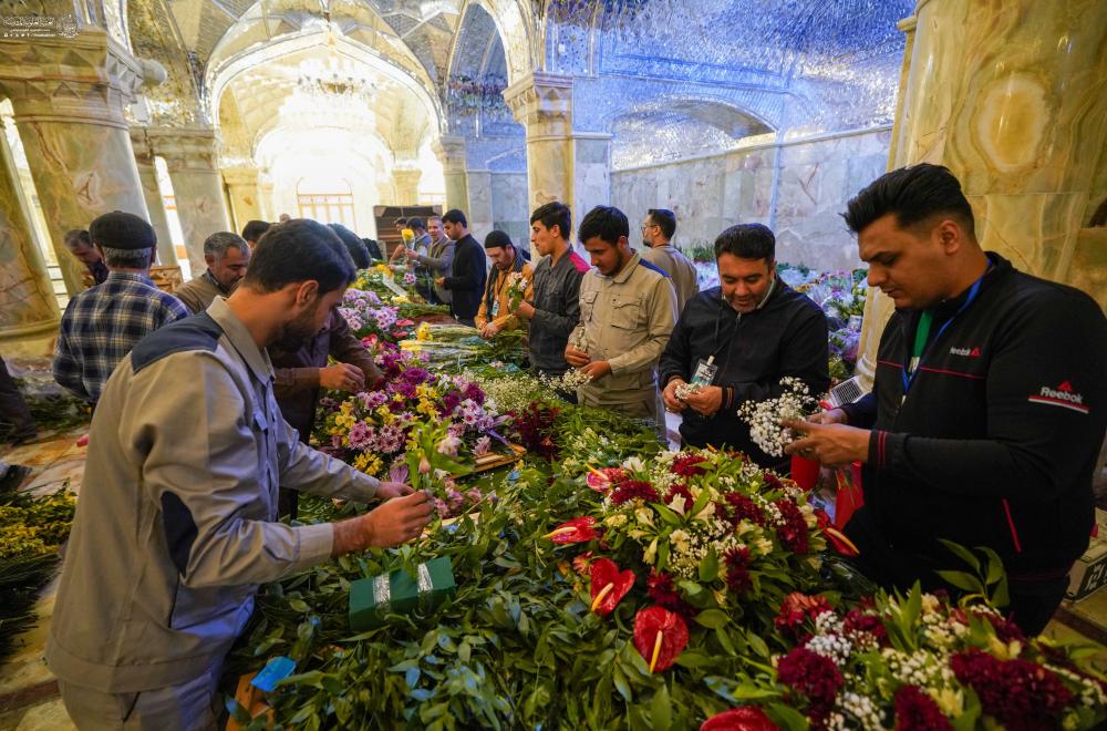 وقال الخادم بارق هادي من وحدة تزيين الحرم، : " إنّ الورد الطبيعي سيستخدم لتزيين الشبّاك الطاهر ومدخل إيوان الذهب ، إضافةً إلى عدد من أروقة الحرم الشريف " ، مبيّنًا أنَّ جزءًا من هذا الورد سيُوزَّع على الزائرين في ليلة ويوم الولادة المباركة.