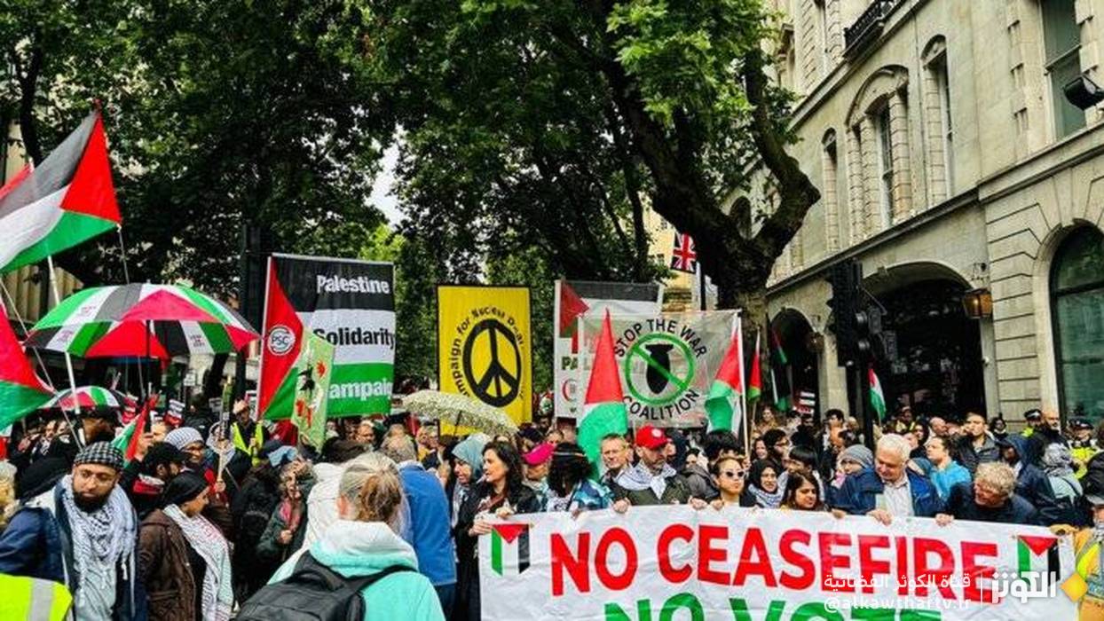 وشارك عشرات الآلاف في هذه التظاهرة، تحت شعار وقف حرب الإبادة في قطاع غزة، ووقف تسليح "إسرائيل"، وعدم التدخل في شؤون القطاع.