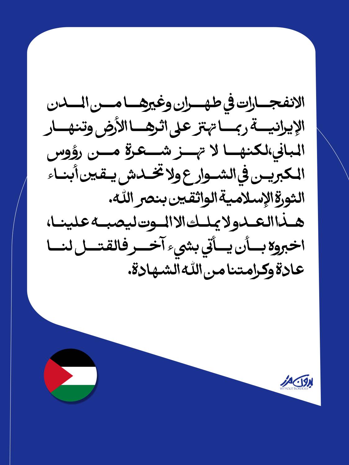 ورغم خطورة الأحداث، تظهر بعض الخطابات المتداولة نبرة تحدٍ واضحة، حيث يؤكد أصحابها أن هذه الهجمات لن تؤثر على معنويات المواطنين أو على قناعاتهم، مشددين على التمسك بمواقفهم والاستمرار في مواجهة ما يصفونه بالعدوان.