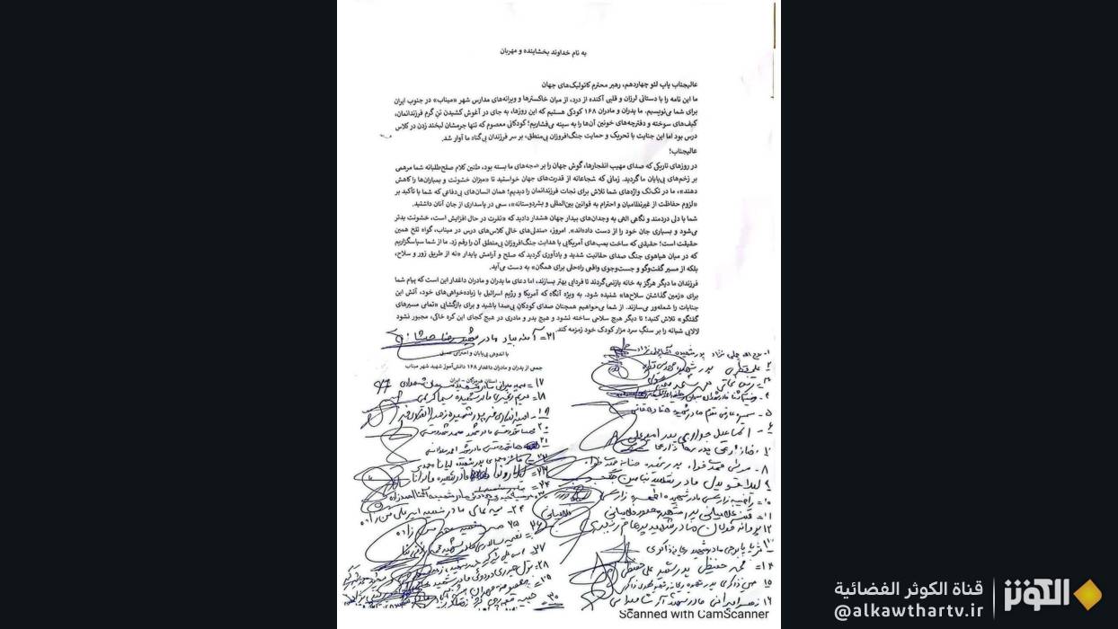 بعث عدد من عائلات الأطفال الشهداء في مدرسة ميناب (بمحافظة هرمزكان/جنوب البلاد) رسالة إلى زعيم الكنسية الكاثوليكية في العالم "البابا لاوون الرابع عشر"؛ معربين فيها عن تقديرهم لمواقف البابا الداعية إلى السلام، وطالبوا منه بأن يكون صوت أطفالهم الذين لا صوت لهم.