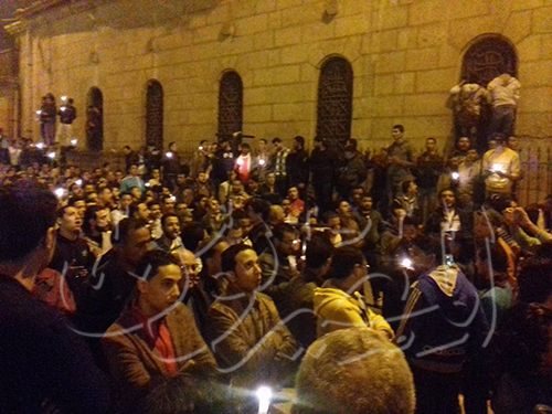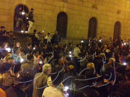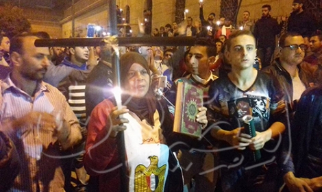وأفادت وكالة الأنباء القرآنية الدولية(إكنا)، طافت سيدة تحمل في يد المصحف وفي أخرى الصليب، محيط الكنيسة البطرسية بالعباسية، وسط حشود الأقباط الغاضبة والتي تطالب بالقصاص للضحايا الذين سقطوا إثر الحادث الإرهابي الذي وقع وراح ضحيته 25شخصاً، وأكثر من 50 مصاباً. واستحسن العديد من الأقباط اللافتة التي تشير إلى الوحدة والترابط بين المسلمين والأقباط، وقاموا بحمل المصحف منها والتقطوا الصور التذكارية به، مطالبين بالقصاص للشهداء سواء. فيما شهد محيط الحادث هدوءً نسبياً حذراً، وإقامة الصلوات على أرواح الضحايا أمام الكنيسة الكاتدرائية والبطرسية على الشموع، وسط انتشار أمني مكثف وانتشار للدوريات الأمنية وإغلاق أغلب الطرق المؤدية لمقر الكنيسة. فيما توقف الهتافات المناهضة للسلطة بسبب عدم تأمين الكنائس بالشكل الكافي. وكانت عبوة ناسفة انفجرت ، داخل الكنيسة البطرسية بالعباسية، ما أسفر عن مصرع ٢٥شخصاً وإصابة أكثر من 50 آخرين وفق إحصائيات وزارة الصحة المصرية.
